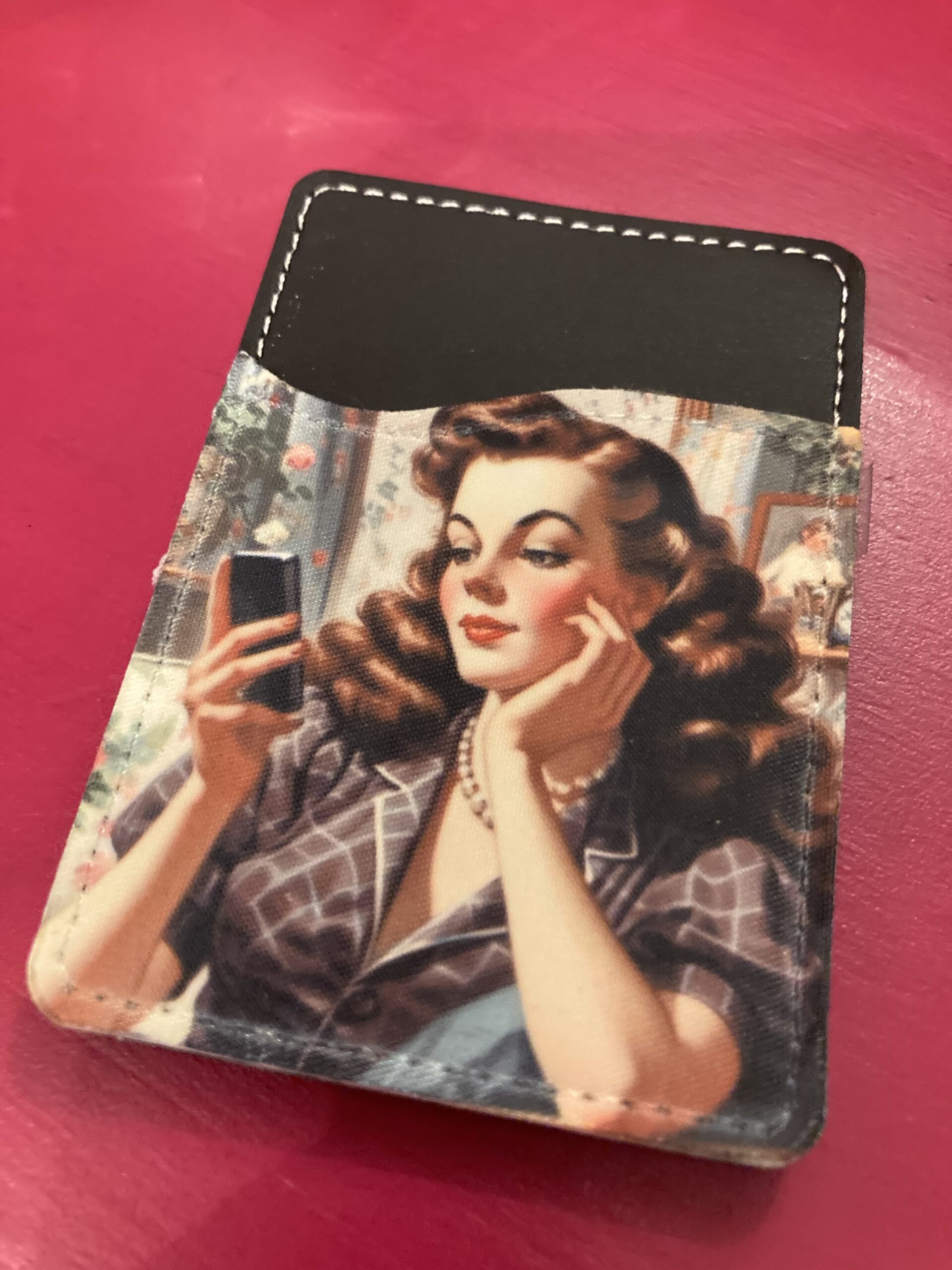 Tarjetero pin up para tel Movil, unico hecho por sublimacion se adjuncts con un adhesivo por si lo quieres unir a la parte  trasera  de tu Movil y asi  tener  la comodidad de llevar tu tarjetero mas usada, bus,….🍒🍒🍒